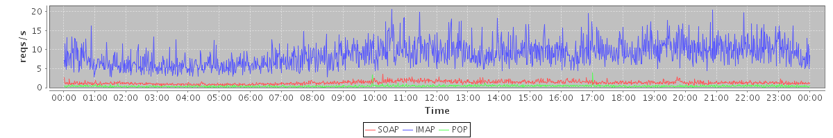 Host zm21.stanford.edu: Mailboxd: Request Rate by Client Protocol