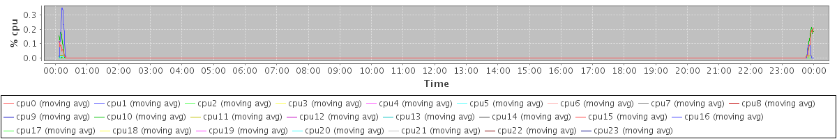 avg(cpu0) = 0.14 avg(cpu1) = 0.07 avg(cpu2) = 0.04 avg(cpu3) = 0.02 avg(cpu4) = 0.02 avg(cpu5) = 0.01 avg(cpu6) = 0.01 avg(cpu7) = 0.00 avg(cpu8) = 0.00 avg(cpu9) = 0.00 avg(cpu10) = 0.06 avg(cpu11) = 0.00 avg(cpu12) = 0.01 avg(cpu13) = 0.00 avg(cpu14) = 0.02 avg(cpu15) = 0.01 avg(cpu16) = 0.01 avg(cpu17) = 0.02 avg(cpu18) = 0.02 avg(cpu19) = 0.01 avg(cpu20) = 0.01 avg(cpu21) = 0.00 avg(cpu22) = 0.00 avg(cpu23) = 0.00