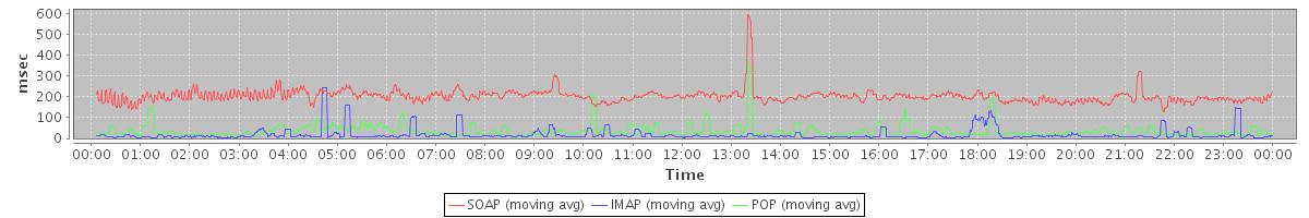 Host zm05.stanford.edu: Mailboxd: Response Time by Client Protocol