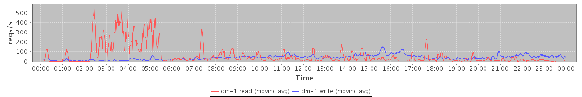 avg(dm-3 read) = 1386.34 avg(dm-3 write) = 204.43