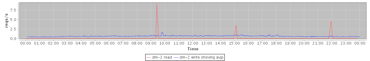 avg(dm-3 read) = 2.27 avg(dm-3 write) = 8.45