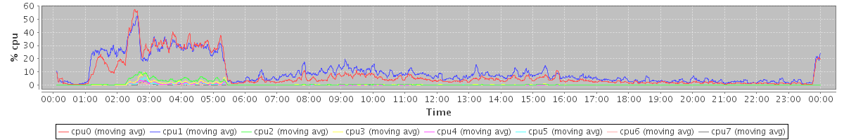 avg(cpu0) = 1.67 avg(cpu1) = 1.53 avg(cpu2) = 1.28 avg(cpu3) = 1.21 avg(cpu4) = 0.90 avg(cpu5) = 0.75 avg(cpu6) = 0.58 avg(cpu7) = 0.57