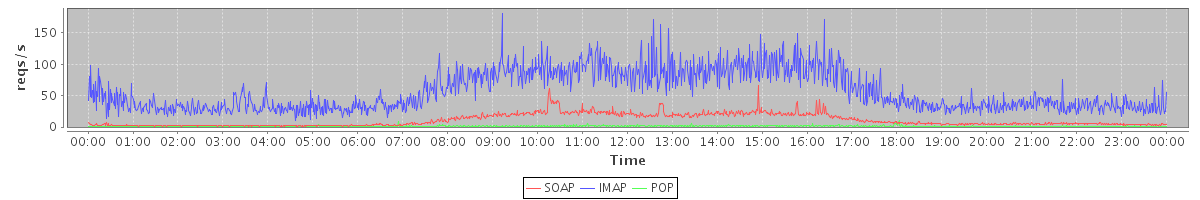Host zm01.stanford.edu: Mailboxd: Request Rate by Client Protocol