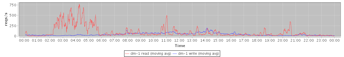 avg(dm-1 read) = 1413.87 avg(dm-1 write) = 603.36