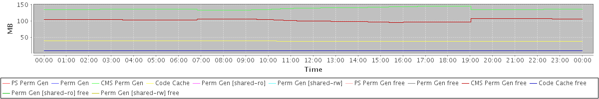 avg(PS Perm Gen) = 0.00 avg(Perm Gen) = 0.00 avg(CMS Perm Gen) = 137.98 avg(Code Cache) = 38.02 avg(Perm Gen [shared-ro]) = 0.00 avg(Perm Gen [shared-rw]) = 0.00 avg(PS Perm Gen free) = 0.00 avg(Perm Gen free) = 0.00 avg(CMS Perm Gen free) = 102.68 avg(Code Cache free) = 8.54 avg(Perm Gen [shared-ro] free) = 0.00 avg(Perm Gen [shared-rw] free) = 0.00
