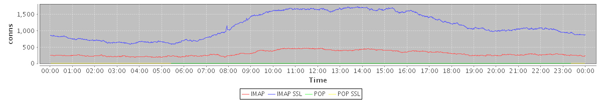 avg(IMAP) = 304.27 avg(IMAP SSL) = 1143.33 avg(POP) = 0.04 avg(POP SSL) = 1.50