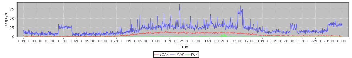 Host zm21.stanford.edu: Mailboxd: Request Rate by Client Protocol