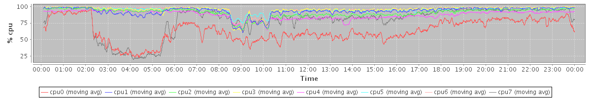 avg(cpu0) = 1.69 avg(cpu1) = 1.08 avg(cpu2) = 1.20 avg(cpu3) = 0.91 avg(cpu4) = 0.93 avg(cpu5) = 0.72 avg(cpu6) = 0.77 avg(cpu7) = 0.86
