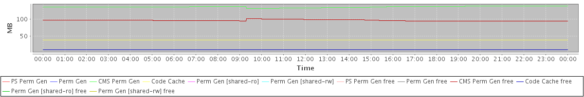 avg(PS Perm Gen) = 0.00 avg(Perm Gen) = 0.00 avg(CMS Perm Gen) = 137.21 avg(Code Cache) = 37.51 avg(Perm Gen [shared-ro]) = 0.00 avg(Perm Gen [shared-rw]) = 0.00 avg(PS Perm Gen free) = 0.00 avg(Perm Gen free) = 0.00 avg(CMS Perm Gen free) = 96.90 avg(Code Cache free) = 9.11 avg(Perm Gen [shared-ro] free) = 0.00 avg(Perm Gen [shared-rw] free) = 0.00