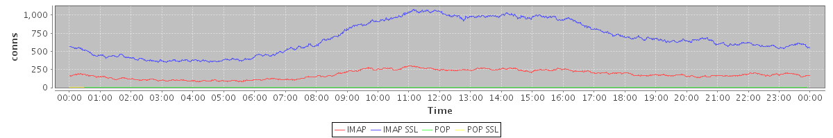 Host zm03.stanford.edu: Mailboxd: Active Connections by Client Protocol