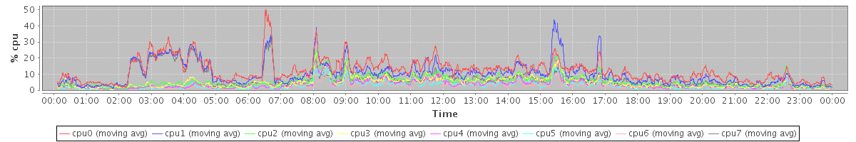 avg(cpu0) = 1.16 avg(cpu1) = 0.96 avg(cpu2) = 0.80 avg(cpu3) = 0.69 avg(cpu4) = 0.55 avg(cpu5) = 0.45 avg(cpu6) = 0.38 avg(cpu7) = 0.63