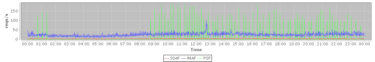 Host zm02.stanford.edu: Mailboxd: Request Rate by Client Protocol