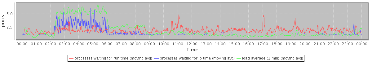 avg(processes waiting for run time) = 1.36 avg(processes waiting for io time) = 0.76 avg(load average (1 min)) = 1.95