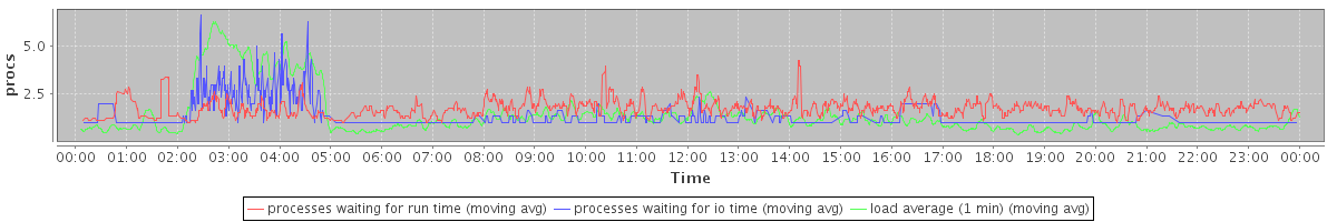 avg(processes waiting for run time) = 1.07 avg(processes waiting for io time) = 0.42 avg(load average (1 min)) = 1.40