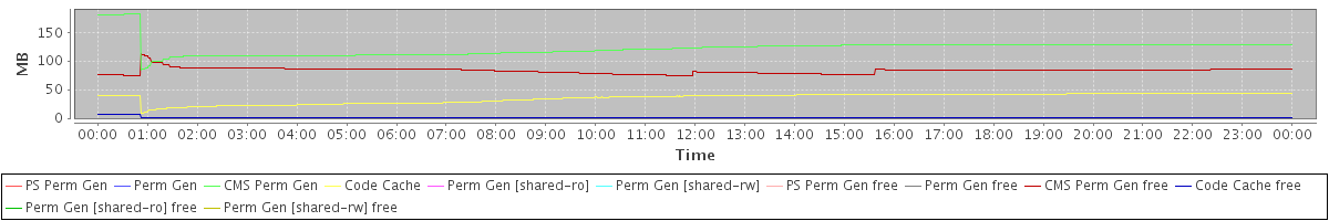 avg(PS Perm Gen) = 0.00 avg(Perm Gen) = 0.00 avg(CMS Perm Gen) = 122.25 avg(Code Cache) = 35.16 avg(Perm Gen [shared-ro]) = 0.00 avg(Perm Gen [shared-rw]) = 0.00 avg(PS Perm Gen free) = 0.00 avg(Perm Gen free) = 0.00 avg(CMS Perm Gen free) = 82.88 avg(Code Cache free) = 0.58 avg(Perm Gen [shared-ro] free) = 0.00 avg(Perm Gen [shared-rw] free) = 0.00
