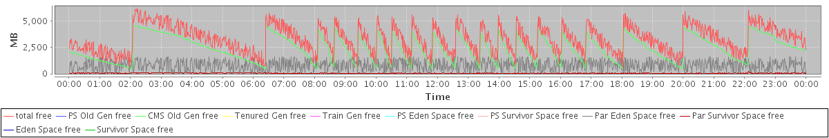 avg(total free) = 3277.01 avg(PS Old Gen free) = 0.00 avg(CMS Old Gen free) = 2410.79 avg(Tenured Gen free) = 0.00 avg(Train Gen free) = 0.00 avg(PS Eden Space free) = 0.00 avg(PS Survivor Space free) = 0.00 avg(Par Eden Space free) = 811.05 avg(Par Survivor Space free) = 55.17 avg(Eden Space free) = 0.00 avg(Survivor Space free) = 0.00