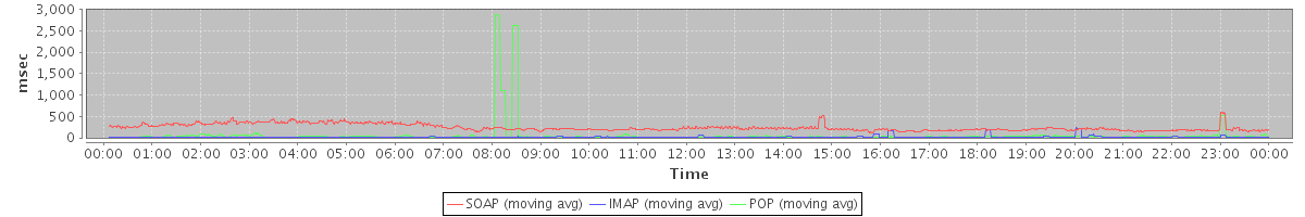 avg(IMAP) = 165.75 avg(IMAP SSL) = 839.76 avg(POP) = 0.00 avg(POP SSL) = 0.38