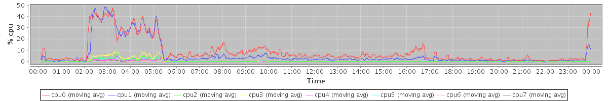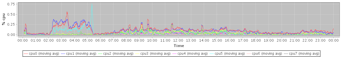 avg(cpu0) = 0.11 avg(cpu1) = 0.10 avg(cpu2) = 0.03 avg(cpu3) = 0.03 avg(cpu4) = 0.02 avg(cpu5) = 0.03 avg(cpu6) = 0.01 avg(cpu7) = 0.01