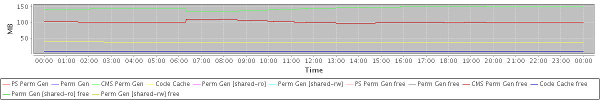 avg(PS Perm Gen) = 0.00 avg(Perm Gen) = 0.00 avg(CMS Perm Gen) = 145.42 avg(Code Cache) = 37.83 avg(Perm Gen [shared-ro]) = 0.00 avg(Perm Gen [shared-rw]) = 0.00 avg(PS Perm Gen free) = 0.00 avg(Perm Gen free) = 0.00 avg(CMS Perm Gen free) = 101.54 avg(Code Cache free) = 8.79 avg(Perm Gen [shared-ro] free) = 0.00 avg(Perm Gen [shared-rw] free) = 0.00