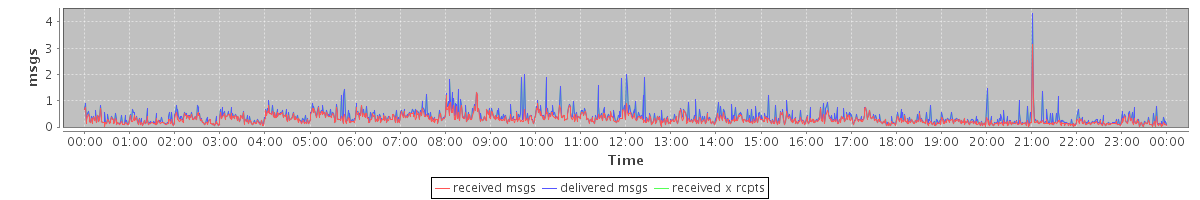 avg(received msgs) = 0.29 avg(delivered msgs) = 0.36 avg(received x rcpts) = 0.36