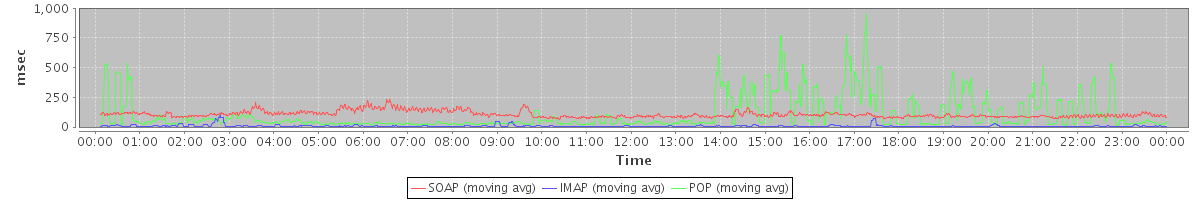Host zm03.stanford.edu: Mailboxd: Response Time by Client Protocol