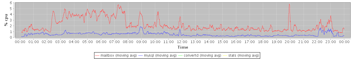 avg(mailbox) = 2.17 avg(mysql) = 0.53 avg(convertd) = 0.00 avg(stats) = 0.00