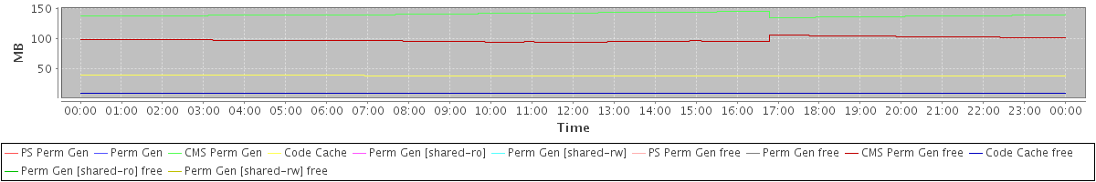 avg(PS Perm Gen) = 0.00 avg(Perm Gen) = 0.00 avg(CMS Perm Gen) = 139.43 avg(Code Cache) = 38.01 avg(Perm Gen [shared-ro]) = 0.00 avg(Perm Gen [shared-rw]) = 0.00 avg(PS Perm Gen free) = 0.00 avg(Perm Gen free) = 0.00 avg(CMS Perm Gen free) = 97.94 avg(Code Cache free) = 8.61 avg(Perm Gen [shared-ro] free) = 0.00 avg(Perm Gen [shared-rw] free) = 0.00