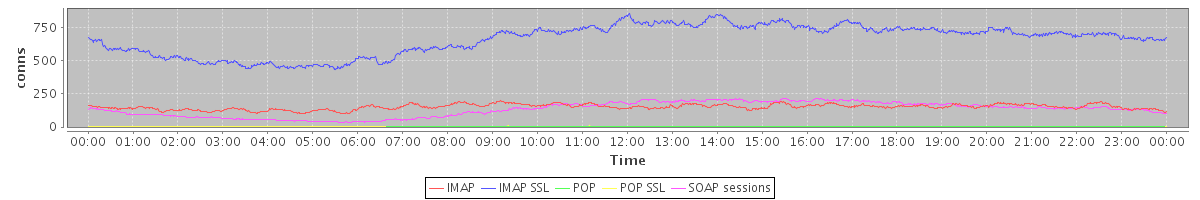 avg(IMAP) = 151.44 avg(IMAP SSL) = 660.00 avg(POP) = 0.03 avg(POP SSL) = 1.56 avg(SOAP sessions) = 133.50