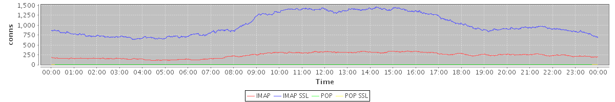 Host zm04.stanford.edu: Mailboxd: Active Connections by Client Protocol