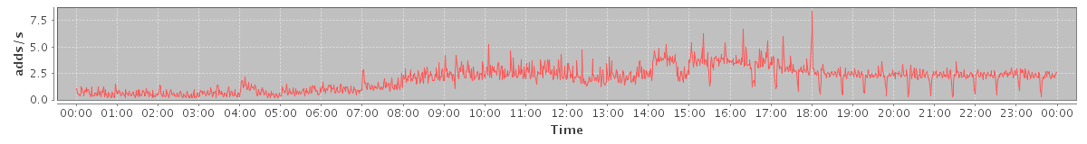 Host zm01.stanford.edu: Mailboxd: Mailbox Add Rate (Delivery Rate)
