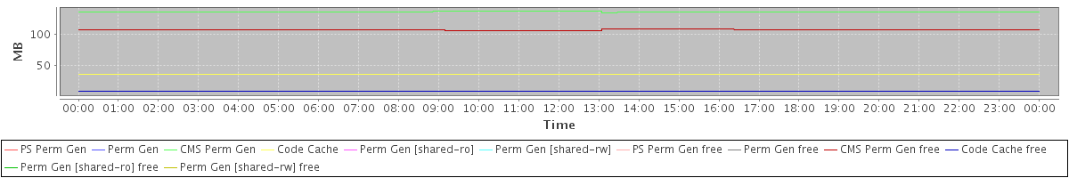 avg(PS Perm Gen) = 0.00 avg(Perm Gen) = 0.00 avg(CMS Perm Gen) = 135.07 avg(Code Cache) = 36.71 avg(Perm Gen [shared-ro]) = 0.00 avg(Perm Gen [shared-rw]) = 0.00 avg(PS Perm Gen free) = 0.00 avg(Perm Gen free) = 0.00 avg(CMS Perm Gen free) = 107.09 avg(Code Cache free) = 9.85 avg(Perm Gen [shared-ro] free) = 0.00 avg(Perm Gen [shared-rw] free) = 0.00