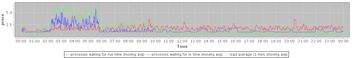 avg(processes waiting for run time) = 1.13 avg(processes waiting for io time) = 0.67 avg(load average (1 min)) = 1.75
