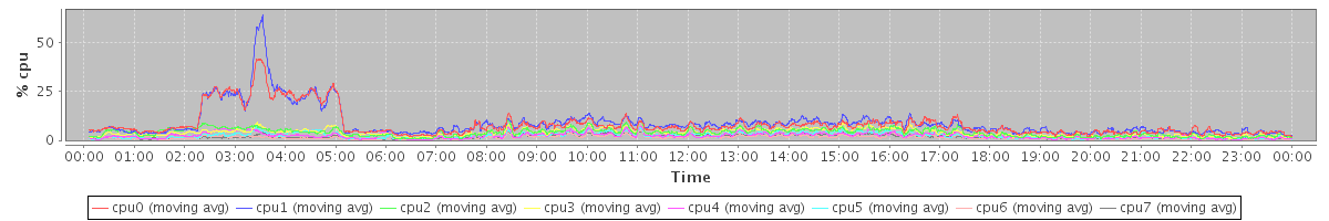 avg(cpu0) = 0.25 avg(cpu1) = 0.27 avg(cpu2) = 0.18 avg(cpu3) = 0.18 avg(cpu4) = 0.11 avg(cpu5) = 0.10 avg(cpu6) = 0.04 avg(cpu7) = 0.04
