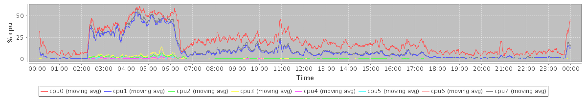 avg(cpu0) = 0.25 avg(cpu1) = 0.19 avg(cpu2) = 0.14 avg(cpu3) = 0.11 avg(cpu4) = 0.09 avg(cpu5) = 0.07 avg(cpu6) = 0.05 avg(cpu7) = 0.10