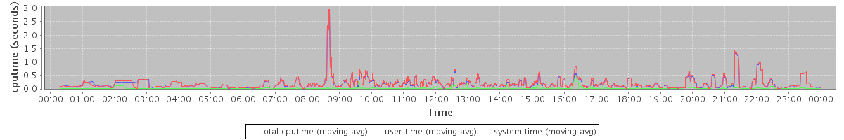 avg(total cputime) = 0.12 avg(user time) = 0.12 avg(system time) = 0.01