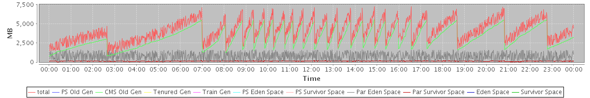avg(total) = 4120.48 avg(PS Old Gen) = 0.00 avg(CMS Old Gen) = 3185.06 avg(Tenured Gen) = 0.00 avg(Train Gen) = 0.00 avg(PS Eden Space) = 0.00 avg(PS Survivor Space) = 0.00 avg(Par Eden Space) = 791.61 avg(Par Survivor Space) = 143.80 avg(Eden Space) = 0.00 avg(Survivor Space) = 0.00
