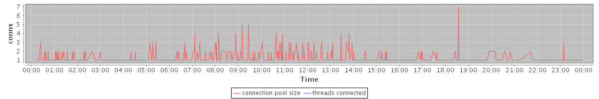 avg(connection pool size) = 0.53 avg(threads connected) = 0.00