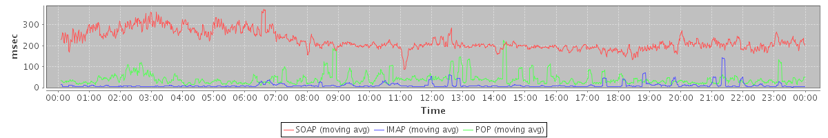 avg(SOAP) = 11.00 avg(IMAP) = 68.84 avg(POP) = 1.14