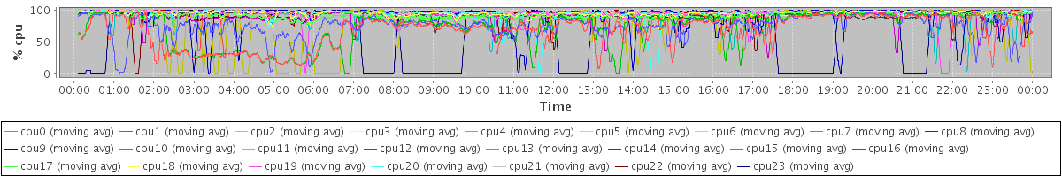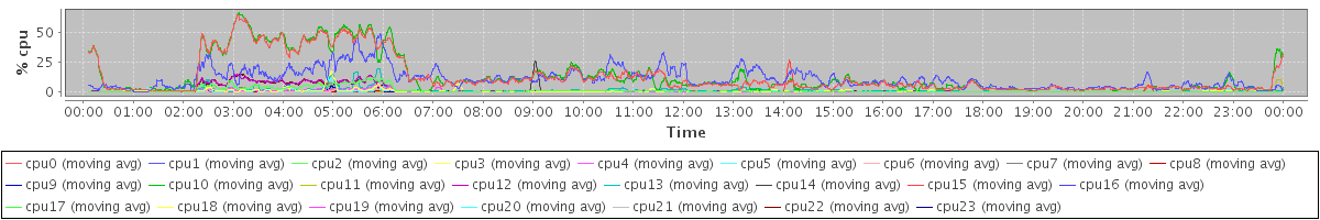 avg(cpu0) = 0.17 avg(cpu1) = 0.15 avg(cpu2) = 0.11 avg(cpu3) = 0.09 avg(cpu4) = 0.07 avg(cpu5) = 0.04 avg(cpu6) = 0.04 avg(cpu7) = 0.02 avg(cpu8) = 0.02 avg(cpu9) = 0.01 avg(cpu10) = 0.10 avg(cpu11) = 0.00 avg(cpu12) = 0.03 avg(cpu13) = 0.03 avg(cpu14) = 0.07 avg(cpu15) = 0.05 avg(cpu16) = 0.05 avg(cpu17) = 0.08 avg(cpu18) = 0.05 avg(cpu19) = 0.04 avg(cpu20) = 0.05 avg(cpu21) = 0.00 avg(cpu22) = 0.01 avg(cpu23) = 0.00