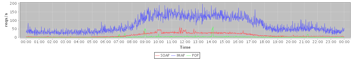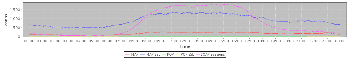 avg(IMAP) = 182.49 avg(IMAP SSL) = 923.62 avg(POP) = 0.03 avg(POP SSL) = 1.43 avg(SOAP sessions) = 761.15