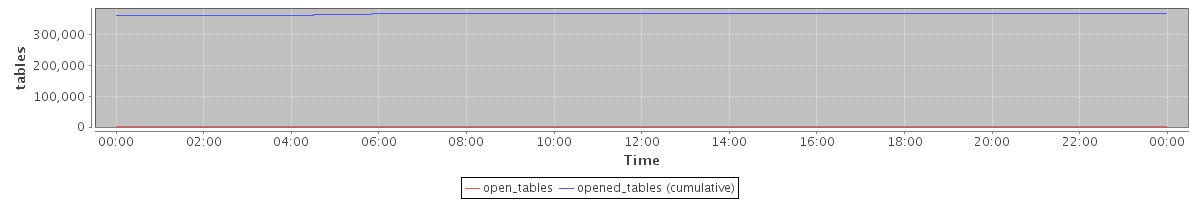 avg(open_tables) = 1193.35 avg(opened_tables (cumulative)) = 367432.08