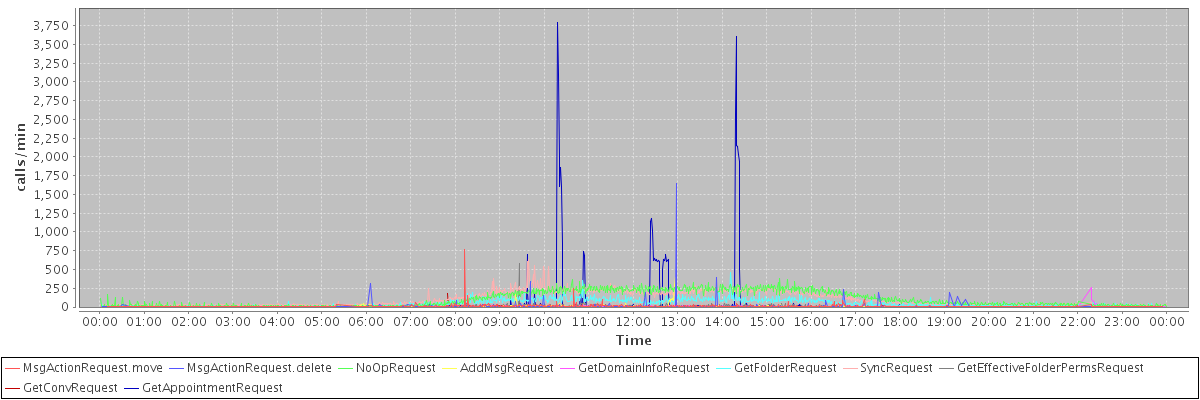 max(MsgActionRequest.move) = 764.00 max(MsgActionRequest.delete) = 1650.00 max(NoOpRequest) = 379.00 max(AddMsgRequest) = 399.00 max(GetDomainInfoRequest) = 259.00 max(GetFolderRequest) = 460.00 max(SyncRequest) = 638.00 max(GetEffectiveFolderPermsRequest) = 583.00 max(GetConvRequest) = 174.00 max(GetAppointmentRequest) = 3795.00