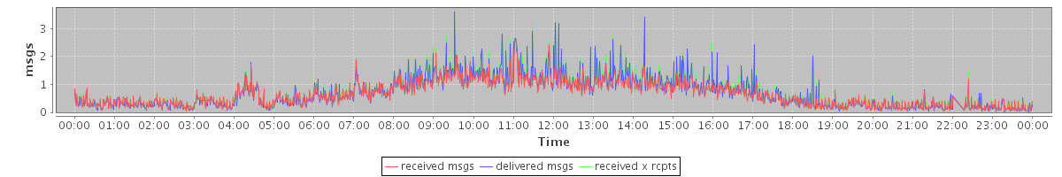 avg(received msgs) = 0.65 avg(delivered msgs) = 0.70 avg(received x rcpts) = 0.76