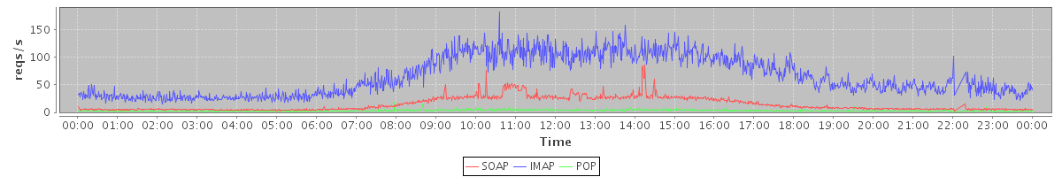 Host zm07.stanford.edu: Mailboxd: Request Rate by Client Protocol