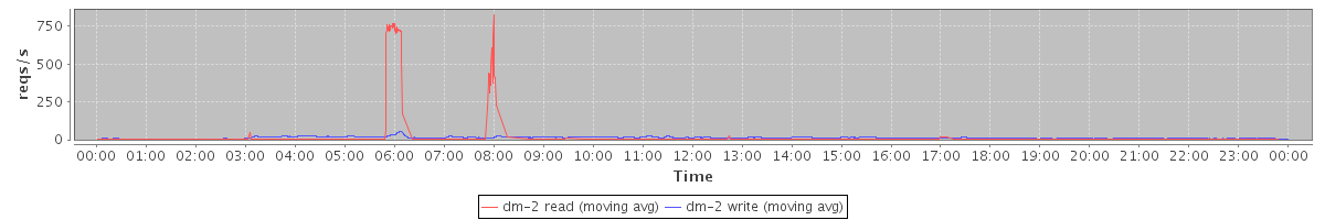 avg(dm-2 read) = 722.06 avg(dm-2 write) = 756.89