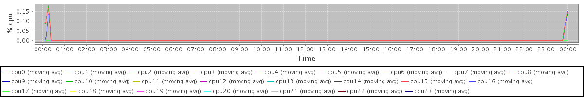 avg(cpu0) = 0.21 avg(cpu1) = 0.23 avg(cpu2) = 0.16 avg(cpu3) = 0.13 avg(cpu4) = 0.10 avg(cpu5) = 0.07 avg(cpu6) = 0.03 avg(cpu7) = 0.02 avg(cpu8) = 0.02 avg(cpu9) = 0.01 avg(cpu10) = 0.10 avg(cpu11) = 0.01 avg(cpu12) = 0.04 avg(cpu13) = 0.03 avg(cpu14) = 0.03 avg(cpu15) = 0.04 avg(cpu16) = 0.03 avg(cpu17) = 0.03 avg(cpu18) = 0.06 avg(cpu19) = 0.03 avg(cpu20) = 0.03 avg(cpu21) = 0.00 avg(cpu22) = 0.02 avg(cpu23) = 0.00