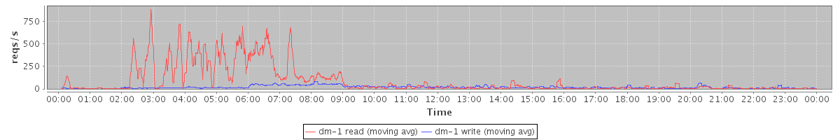 avg(dm-3 read) = 1563.90 avg(dm-3 write) = 322.52