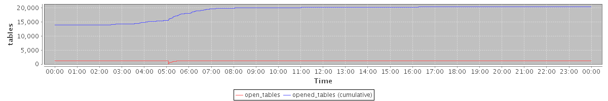 avg(open_tables) = 1193.53 avg(opened_tables (cumulative)) = 18805.62