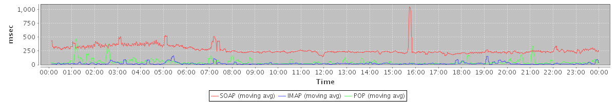 Host zm04.stanford.edu: Mailboxd: Response Time by Client Protocol