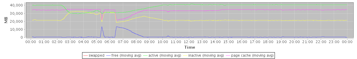 avg(swapped) = 0.00 avg(free) = 1218.78 avg(active) = 38154.57 avg(inactive) = 22986.81 avg(page cache) = 33401.27